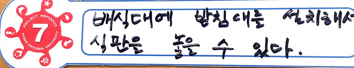 배식대에 받침을 설치해서 식판을 놓을 수 있다.