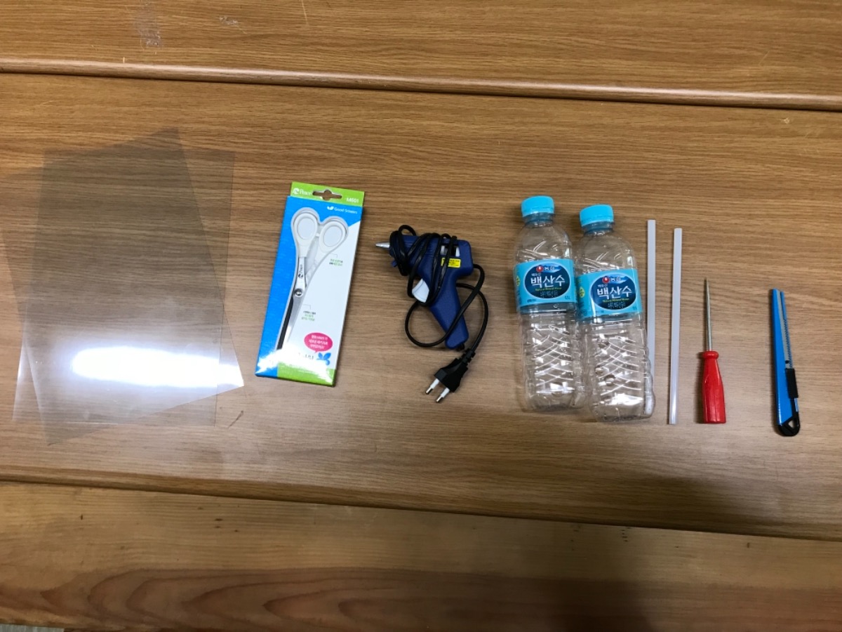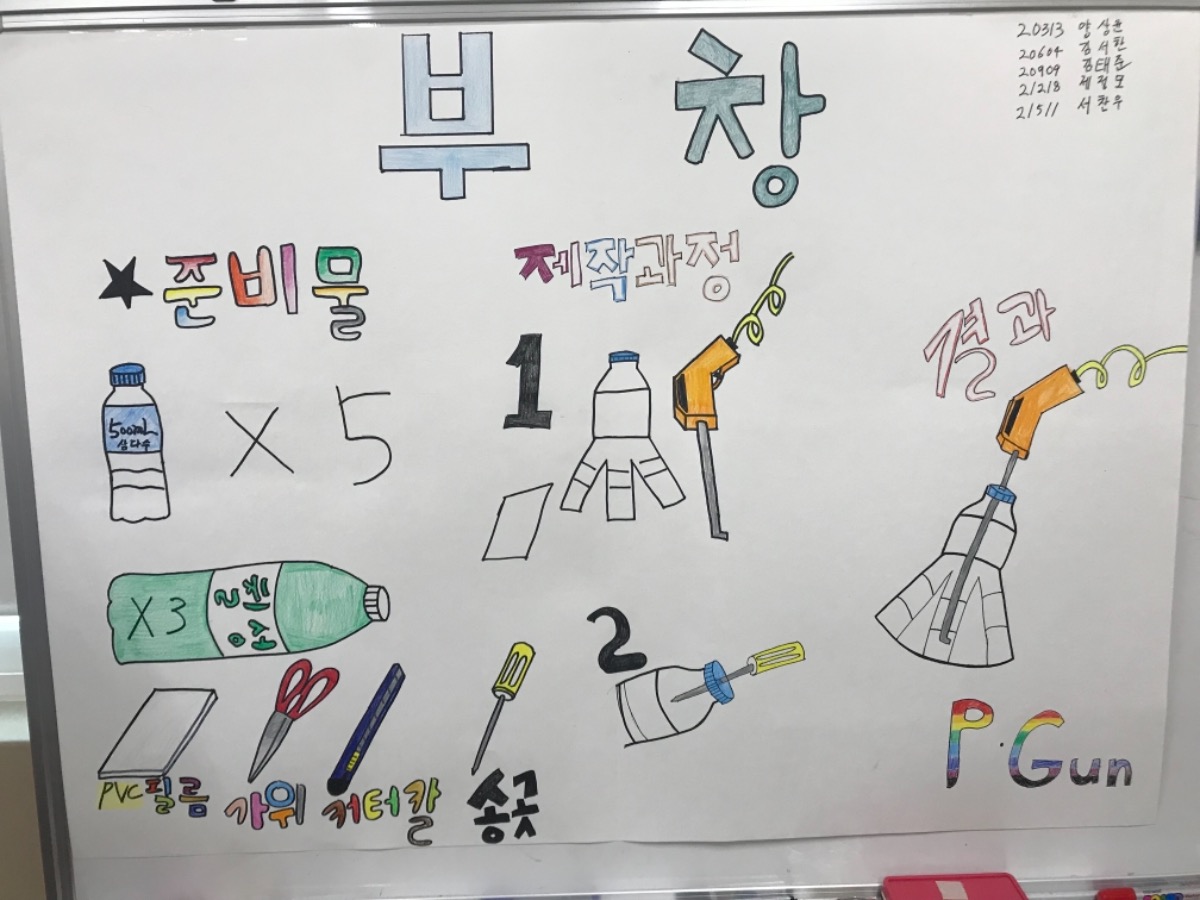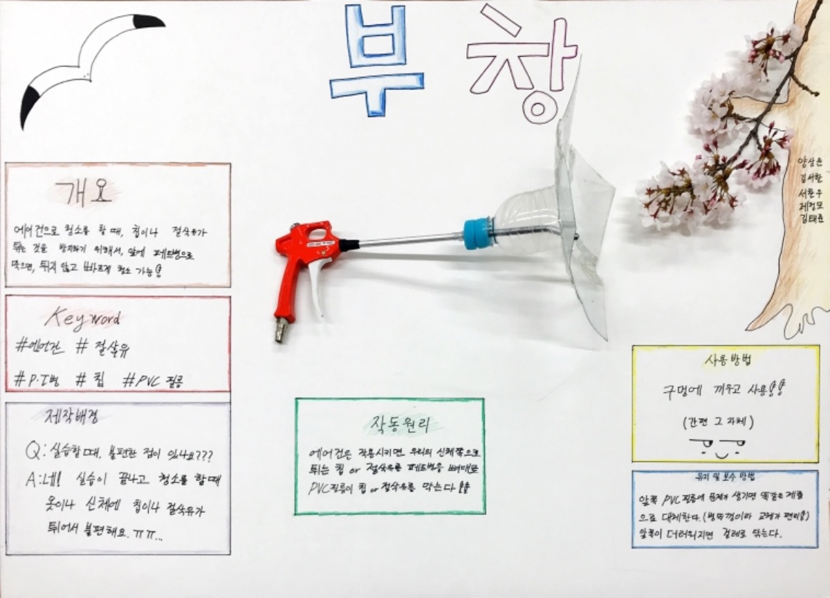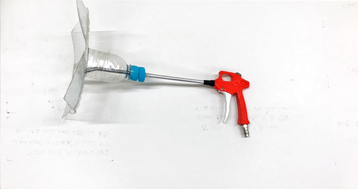 에어건에 페트병을 장착하면 사용자에게 칩이 튀지 않는다.