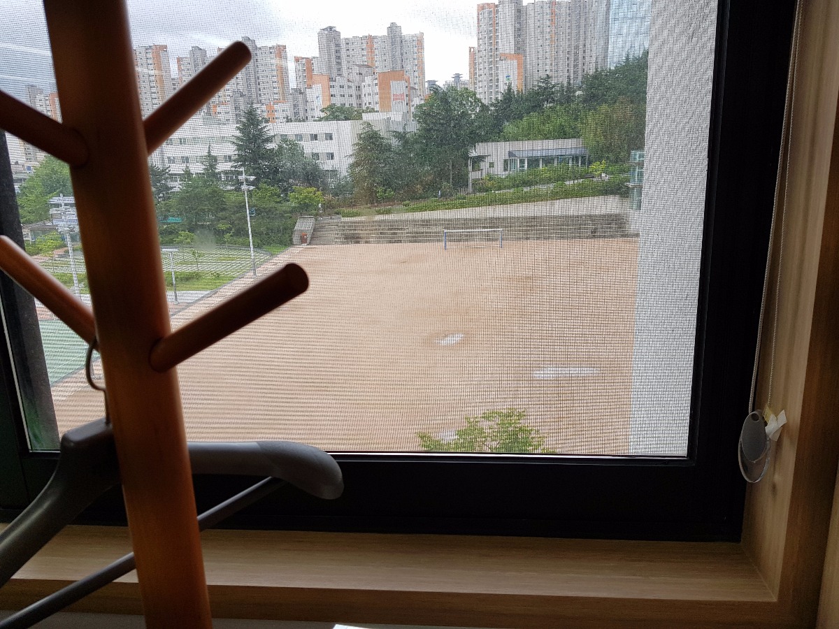 운동장 옆에 위치하여 창가측 모래유입이 심함
