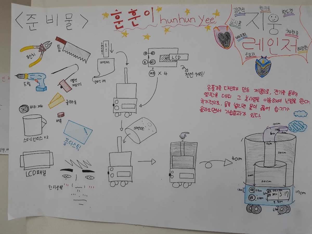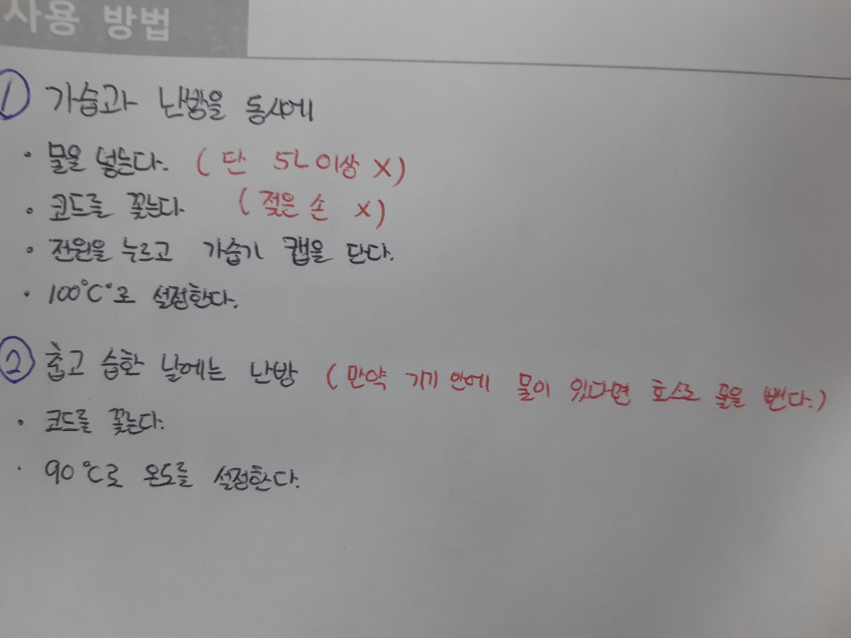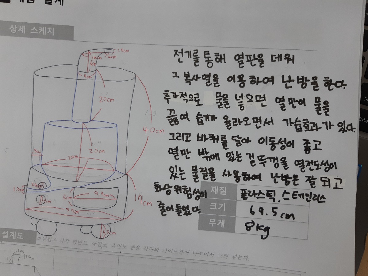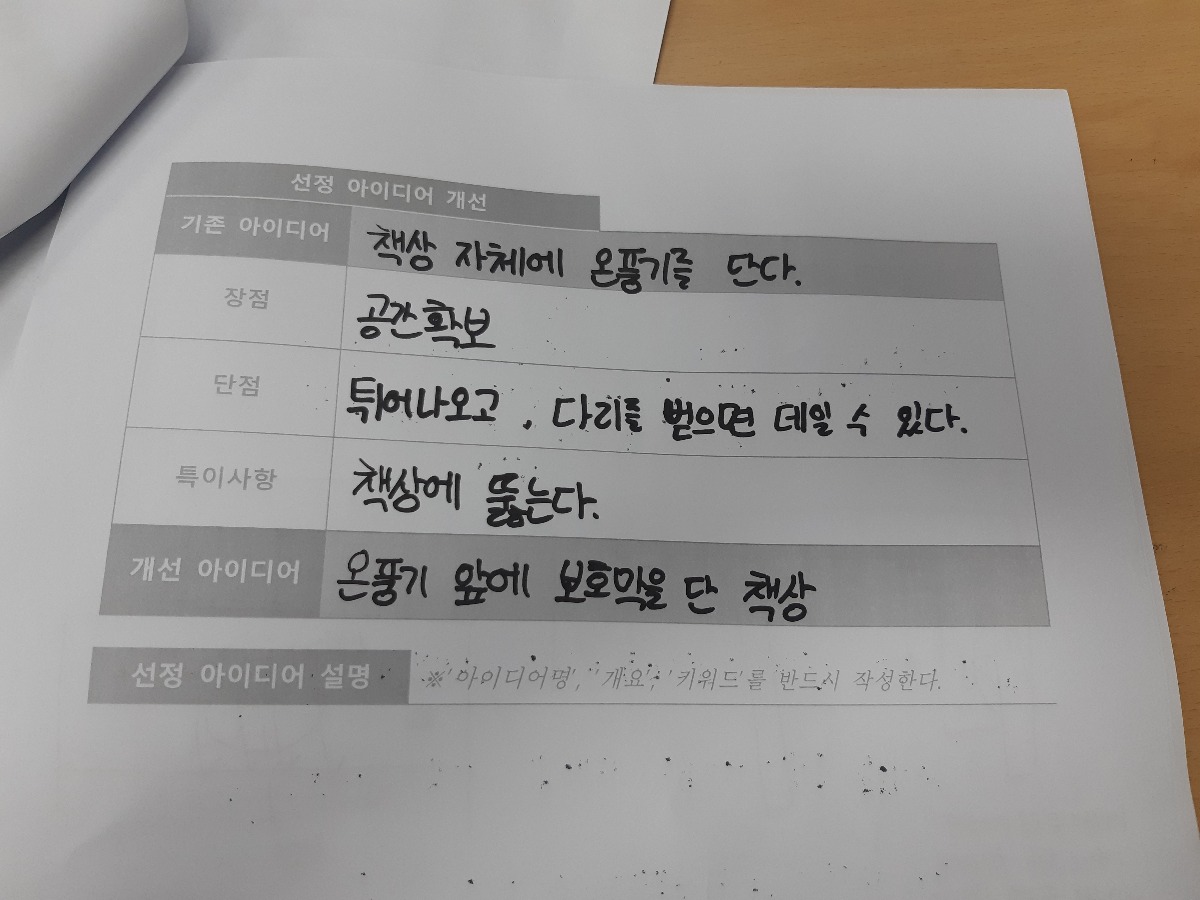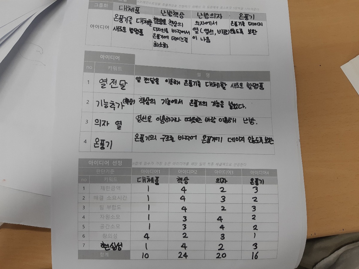난방이 잘 되지않아 각자 자리에 온풍기가 하나씩 위치해있는데 보이지않아 발아 데일 위험이 있다.