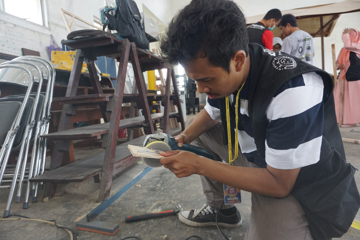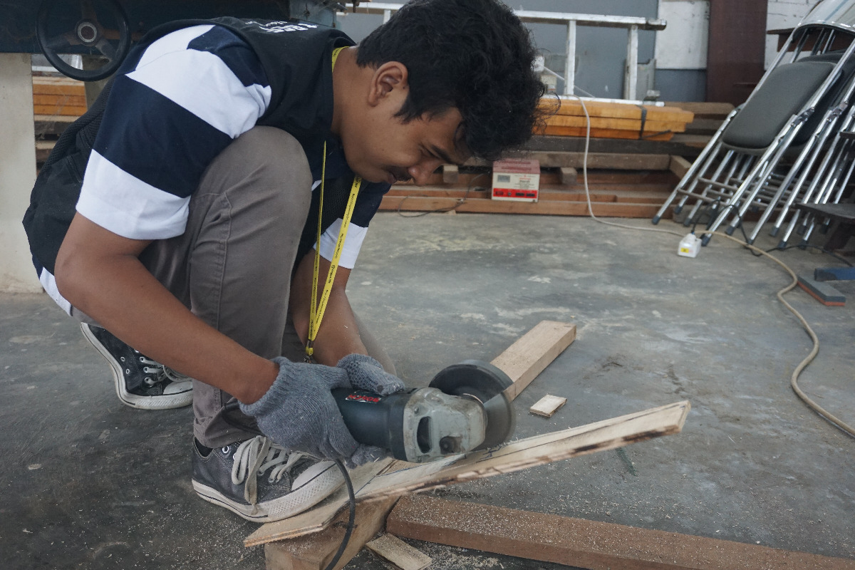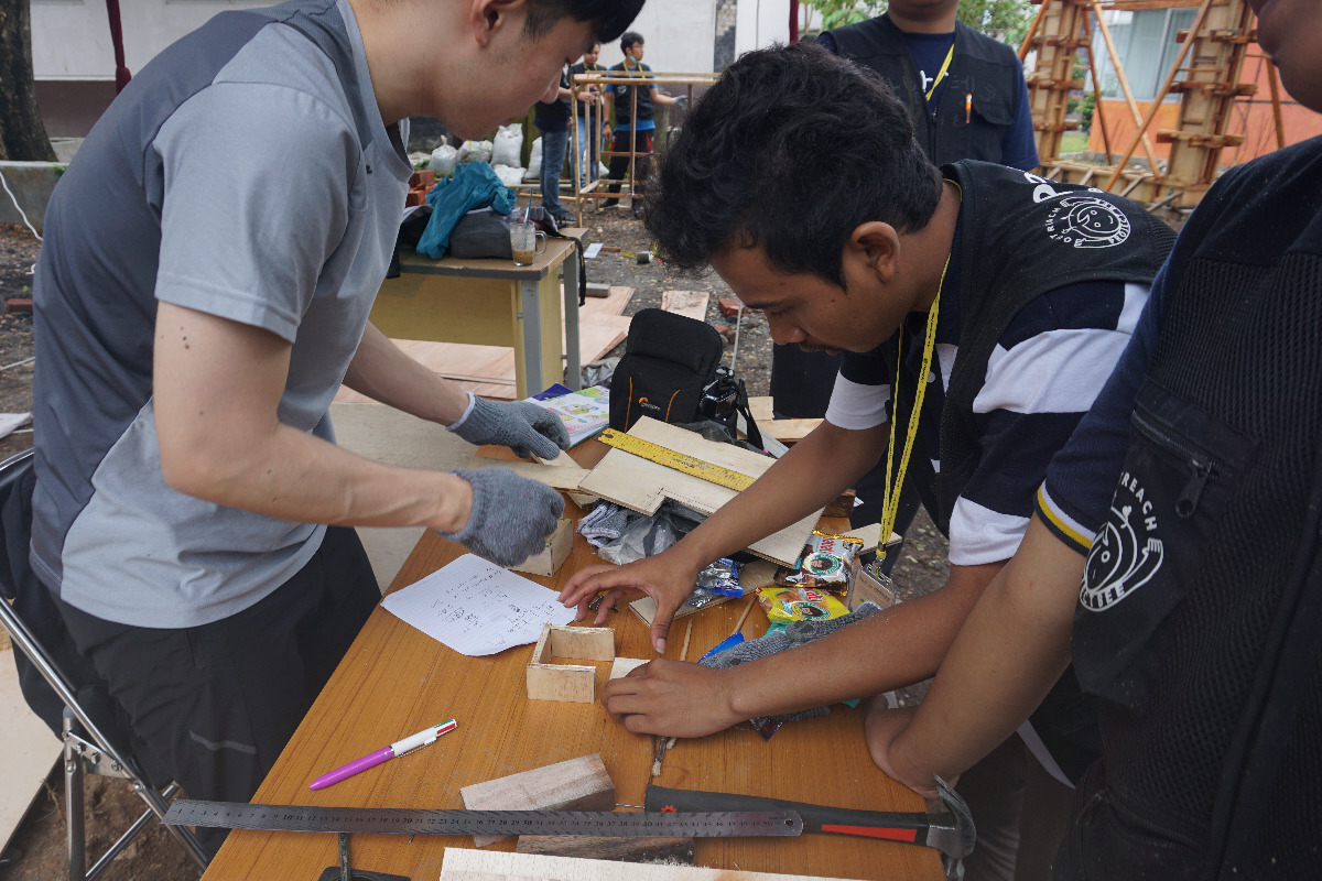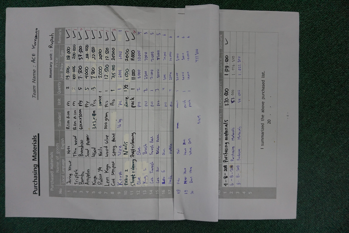 We have purchased the materials we need. We came to three shop, building material, bamboo shop, and secondhand shop. We have purchased all that we need. But materials from building material shop will come at tomorrow noon.