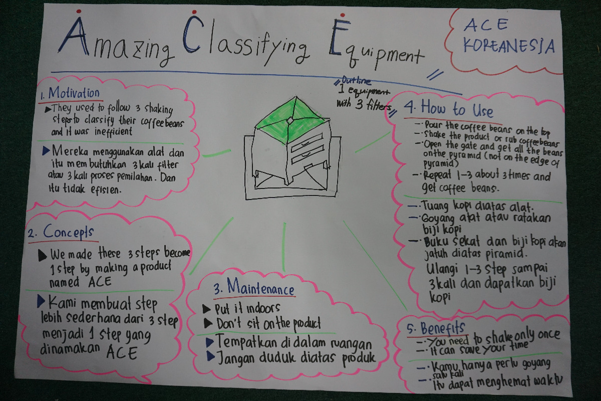 This is our solution for Classifying Coffee Beans problem. We made ACE (Amazing Classifying Equipment) to simplify classifying process from three steps to only one step with one equipment. We hope this equipment can help villager to reduce time for classifying between robusta and lanang coffee beans.