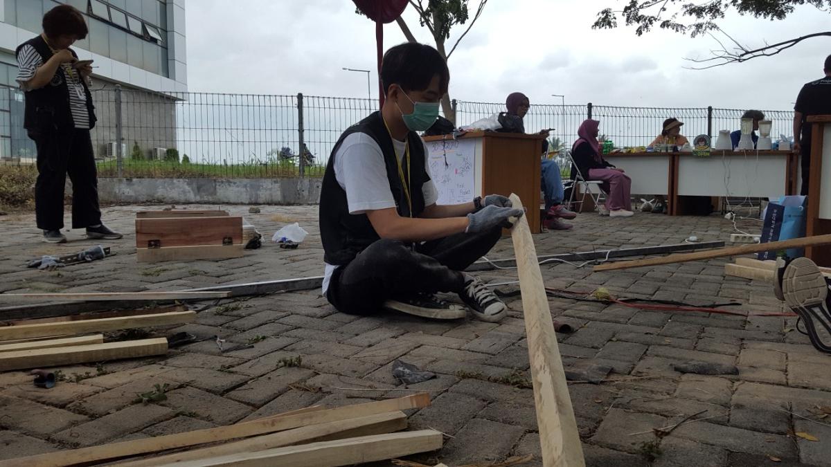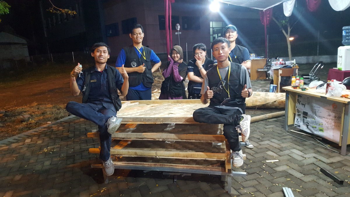 Our progres to day are assembly wood become frame, atteching bamboo to frame, polishing the wood, and make PPT. Our progres is 75%
