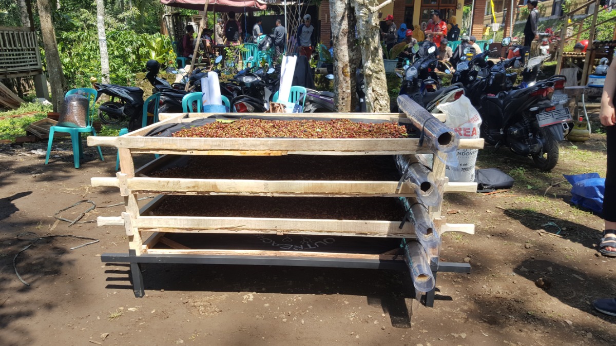 The problems of drying situation are they take times to dry the coffee when it's raining, the coffee bean is messed up on the floor, etc.
