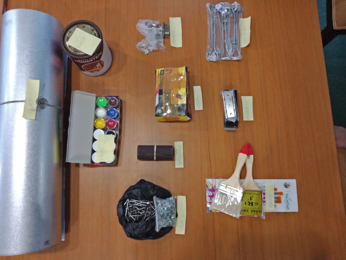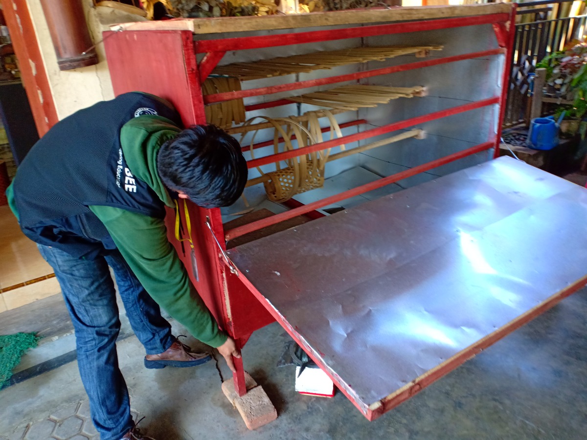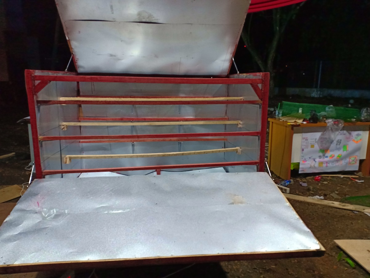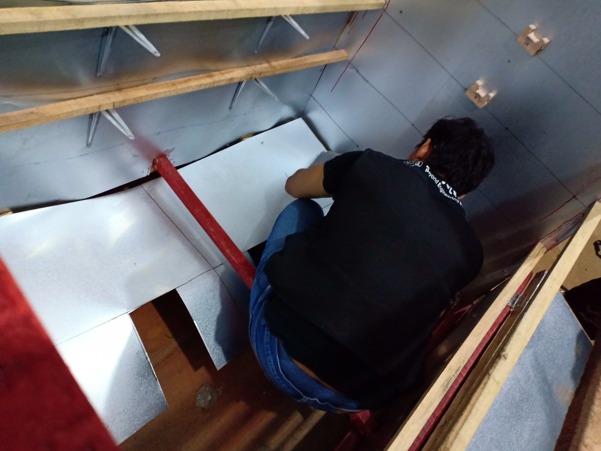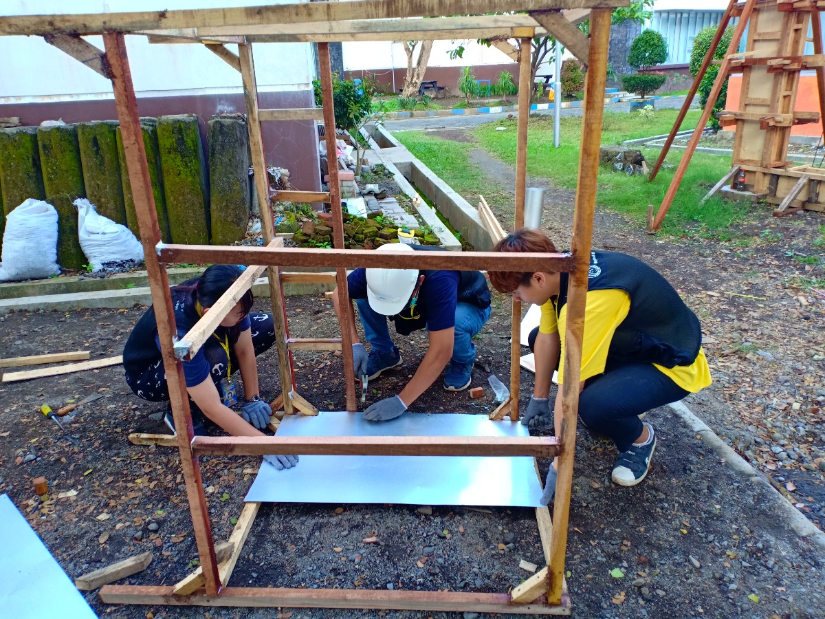The progress of our team on the 3rd day is to put a handle inside the frame, install the zinc under itu and place the driver, and paint on the outer wall