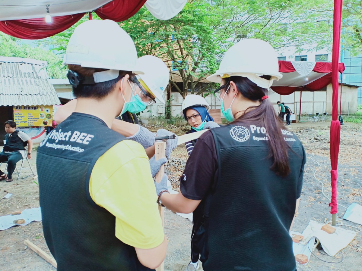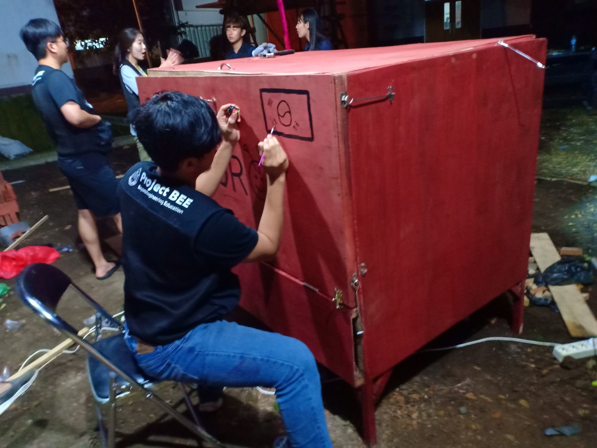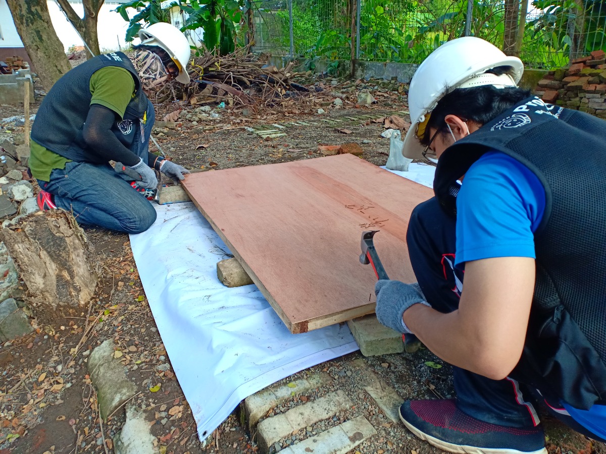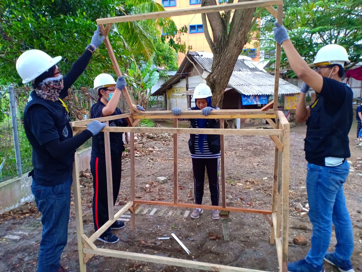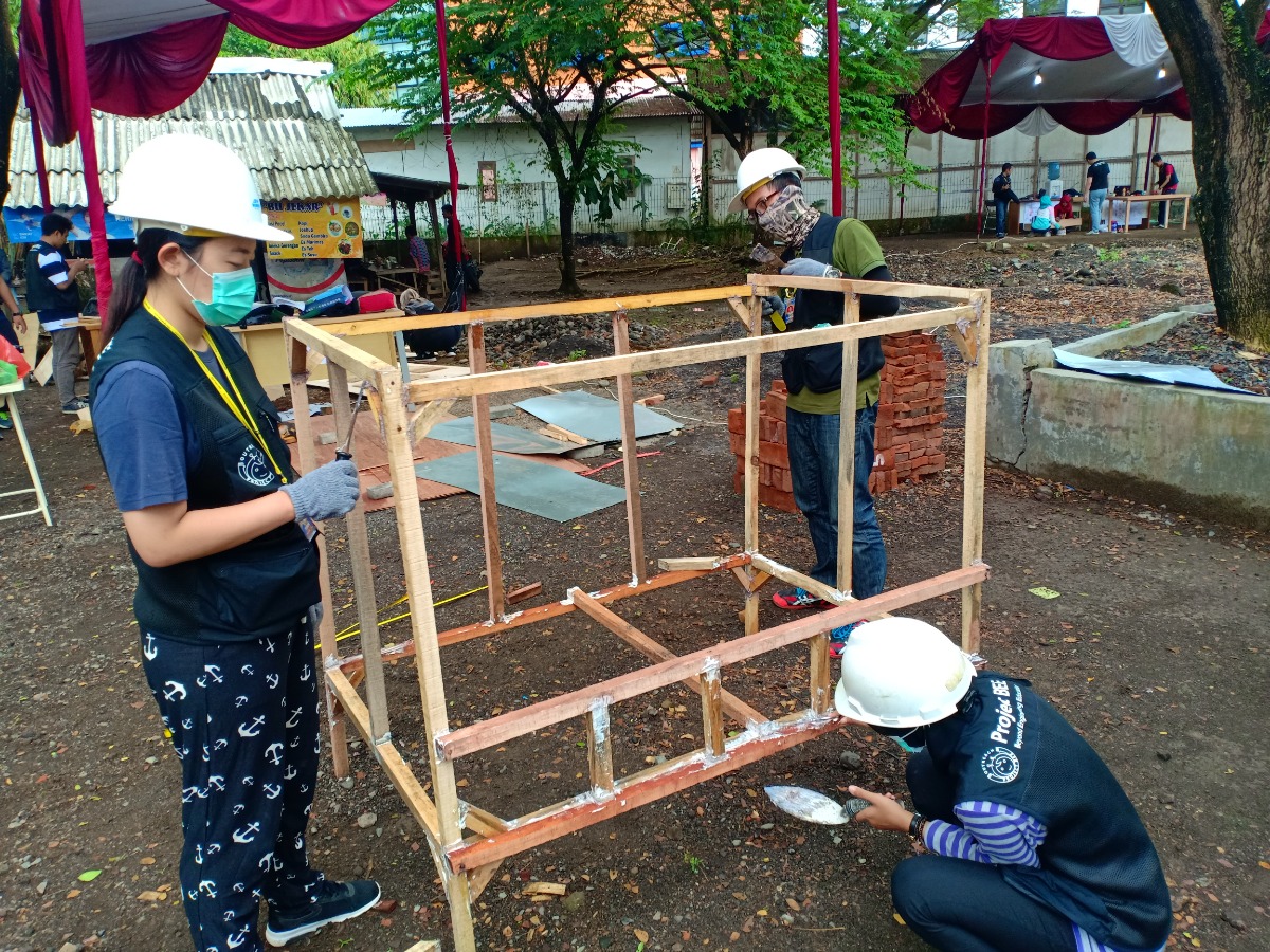 The progress of our team on the 3rd day is to put a handle inside the frame, install the zinc under itu and place the driver, and paint on the outer wall