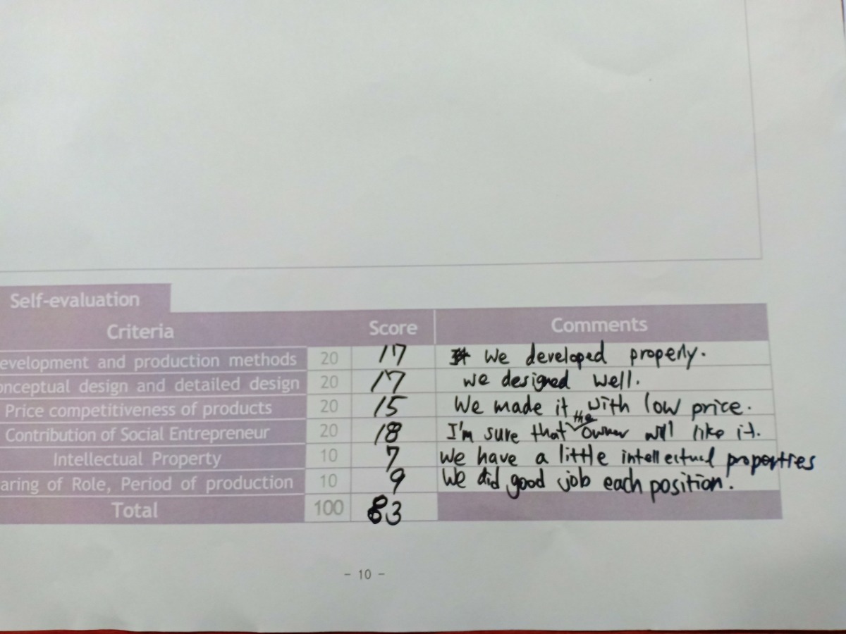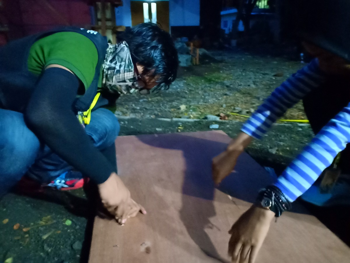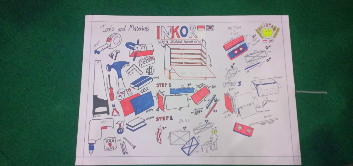 The progress of our group today ia starting from measuring material, cutting it, and forming a frame work, beside that our product have also given glue to our products, maybe our product has reached 40%