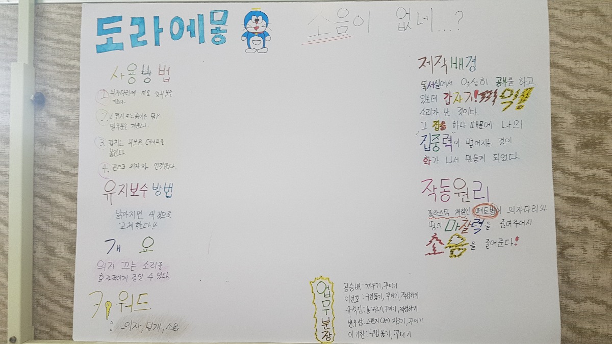 독서실에 의자소리가 시끄러워 공부에 방해가된다.