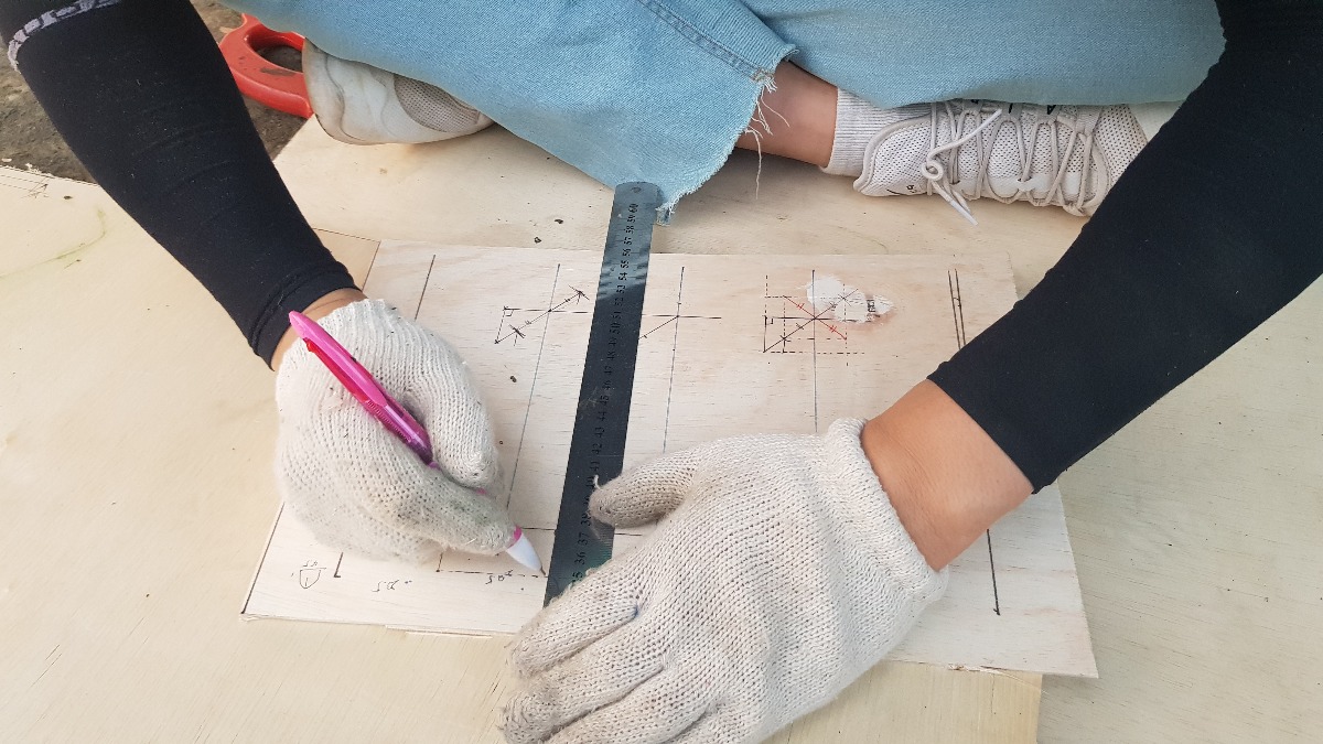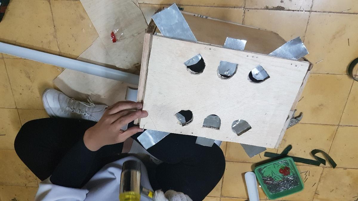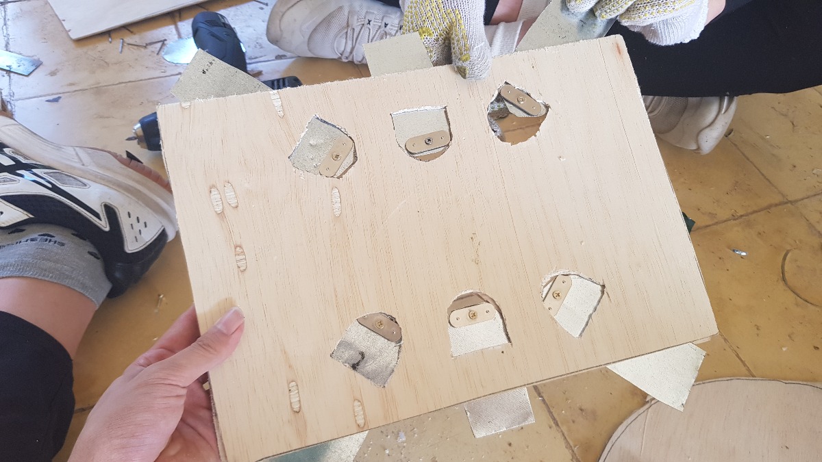 After today's daily meeting, we change our material of side wall from stainless to thick plywood, to decrease dangerous factor and to assemble better.