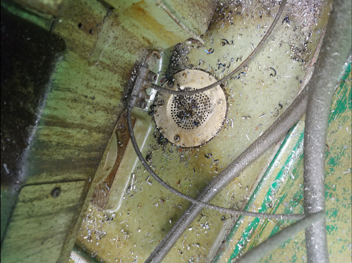 너무 작은 칩은 배출구로 절삭유와 함께 들어가서 재활용하지 못하게 하고 큰 칩은 배출구를 막는다