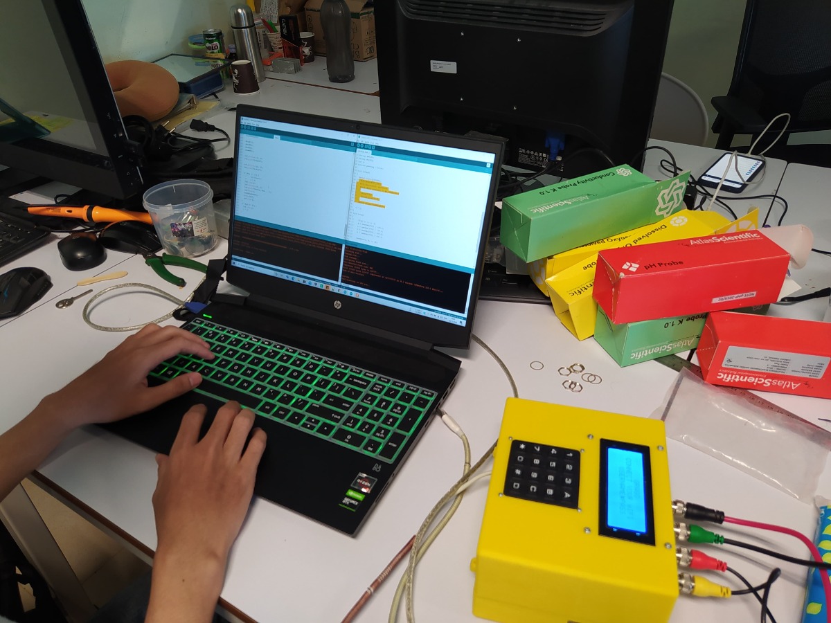 [CV Andini Sakti] They still use conventional monitoring systems, such as measuring the pH of pond water, which still uses litmus paper. Water quality measurement results are written on paper.