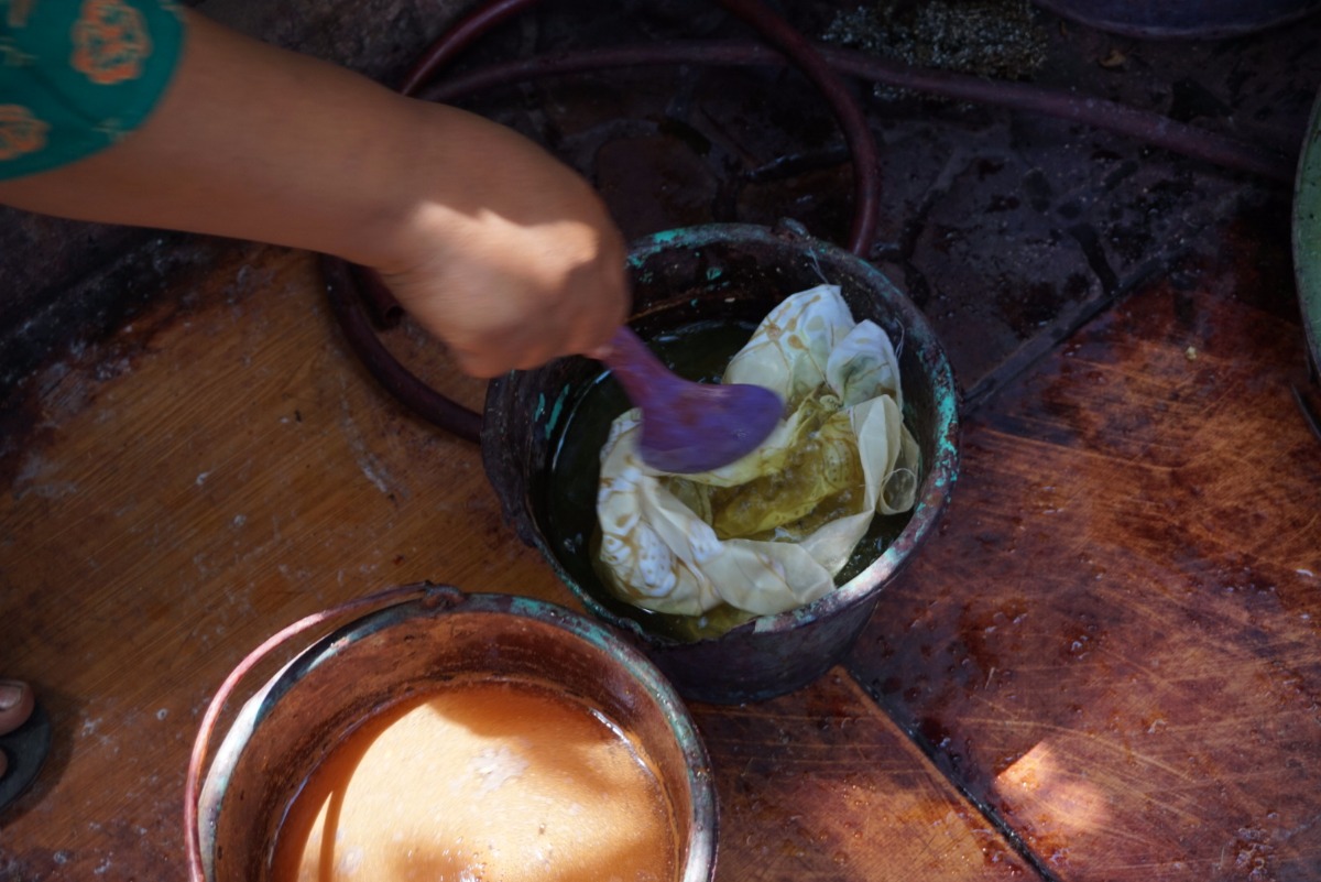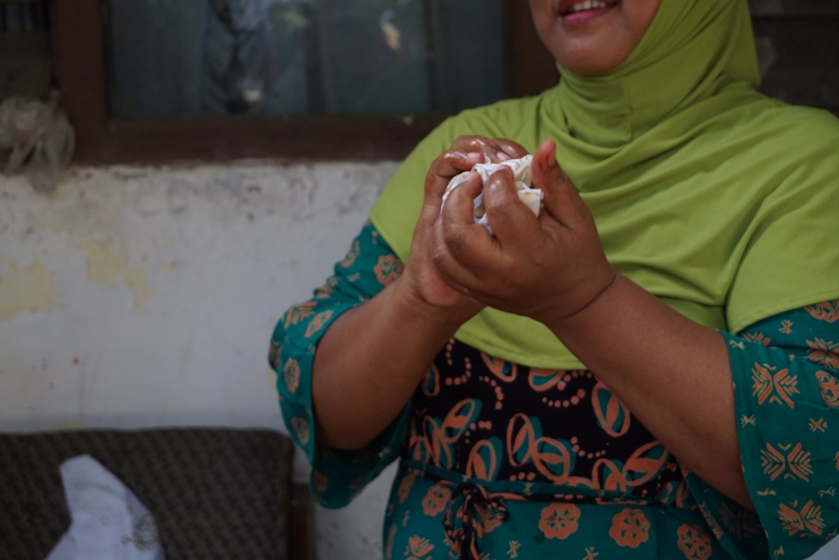 This is the hardest part of making thr batik but she didn`t have any tools and measurement to make it easily.
