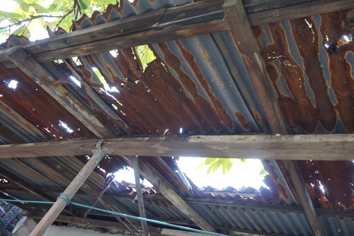 Because the roof of the place is made from zinc, it has already broken by raining and tree above.