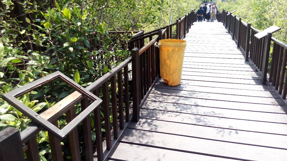 Struckturing the trash bin not good at at road in mangroove