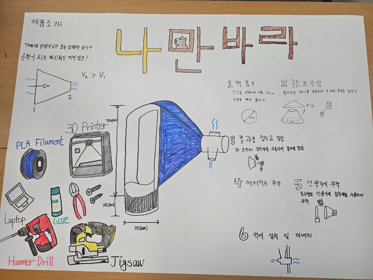 공기 청정기 송풍구에 에어덕트를 사용하여 공기흐름을 유도