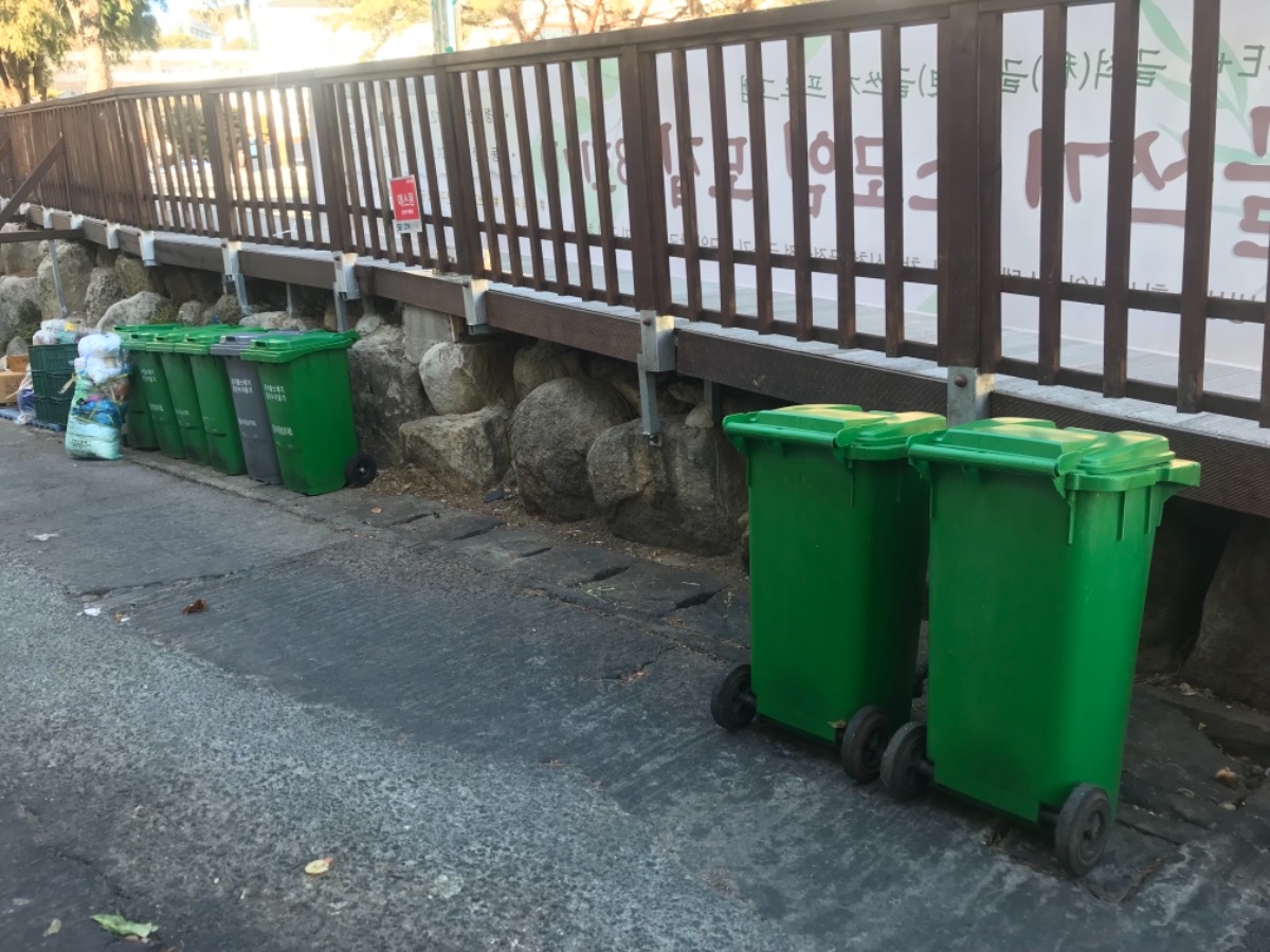 음식물 쓰레기통에 압축기능이 없고 이동이 불편하여 문제점을 초래한다.
